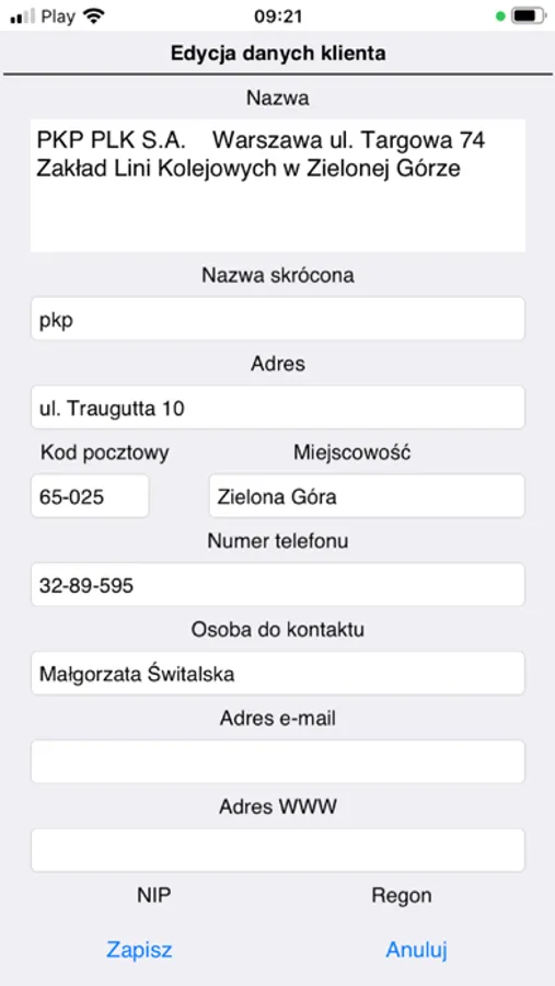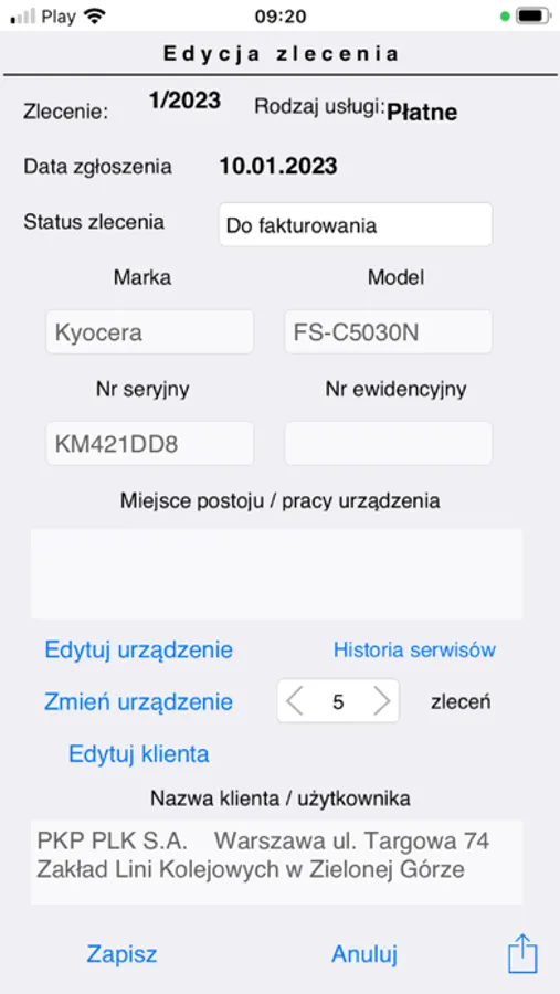 - historia współpracy: sprzedaż, dostawy, serwisy, urządzenia, umowy, notatki,