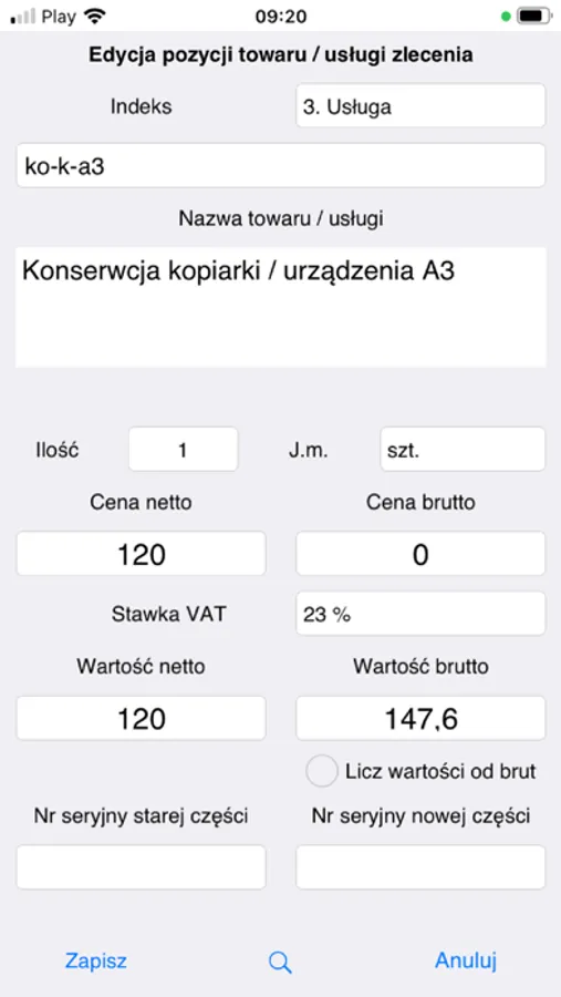 - rozliczanie serwisu i techników z wyników pracy,