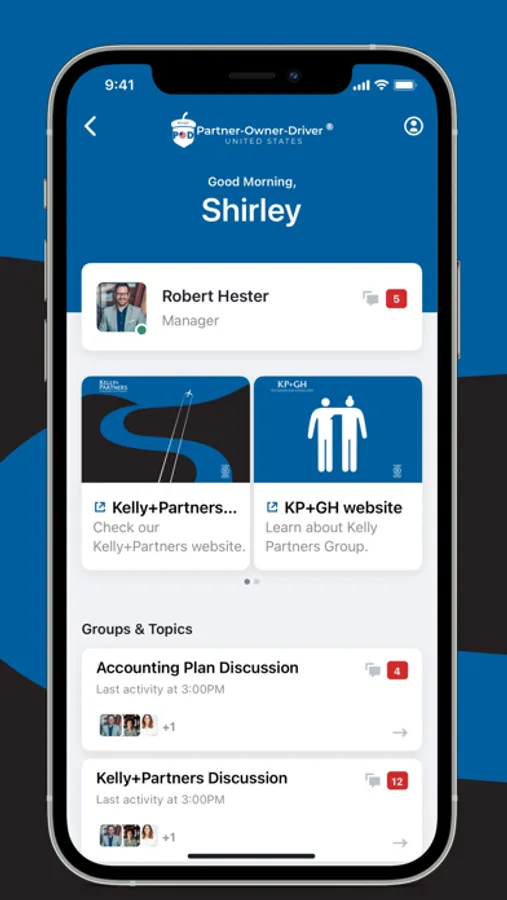 The KP+GH Partner-Owner-Driver ®( POD™) USA App helps firms communicate, share information and manage actions with the Kelly+Partners team.