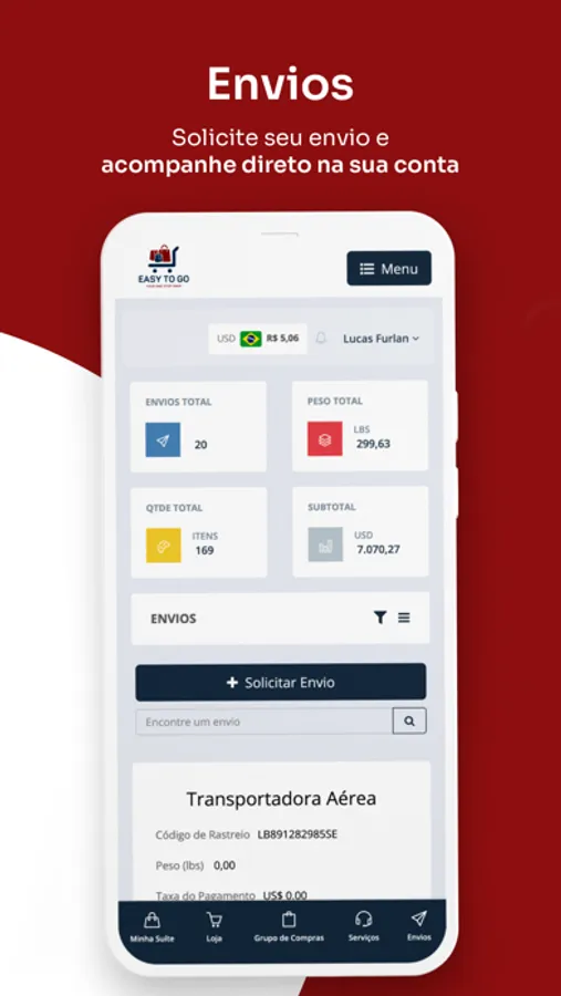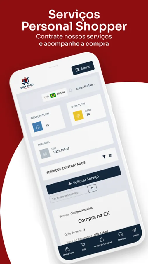 O app EASY TO GO é uma plataforma que permite gerenciar suas compras por meio de nossos serviços de personal shopper, grupo de compras e loja virtual, além de possibilitar o redirecionamento de encomendas.