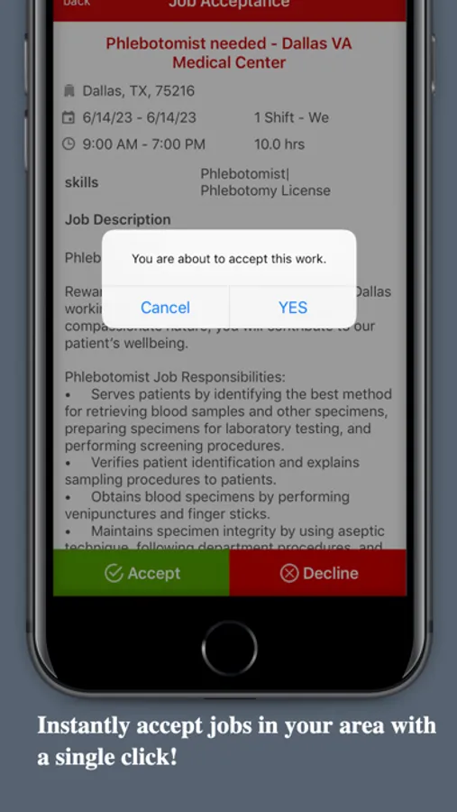 • Review any job notifications that match your interest and either accept or decline. It’s entirely up to you.
