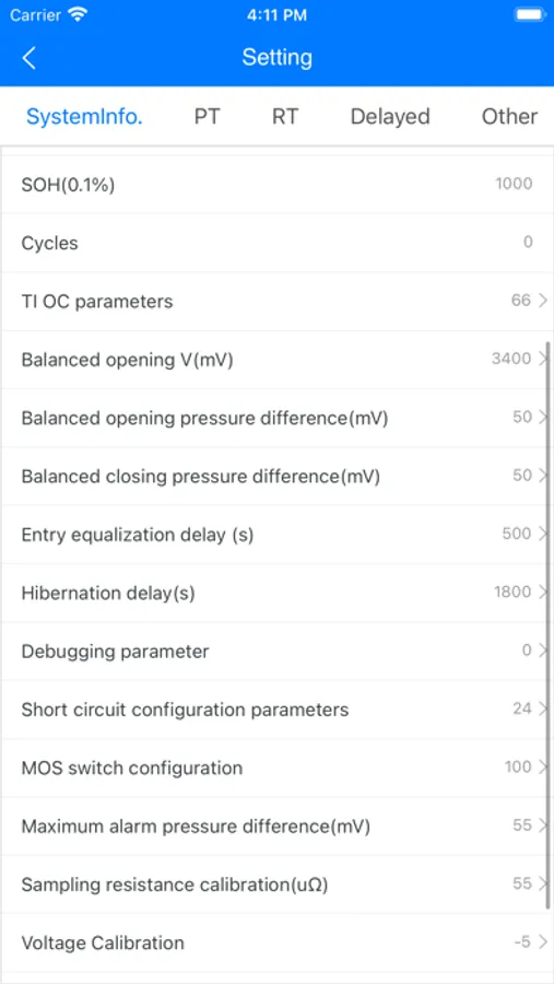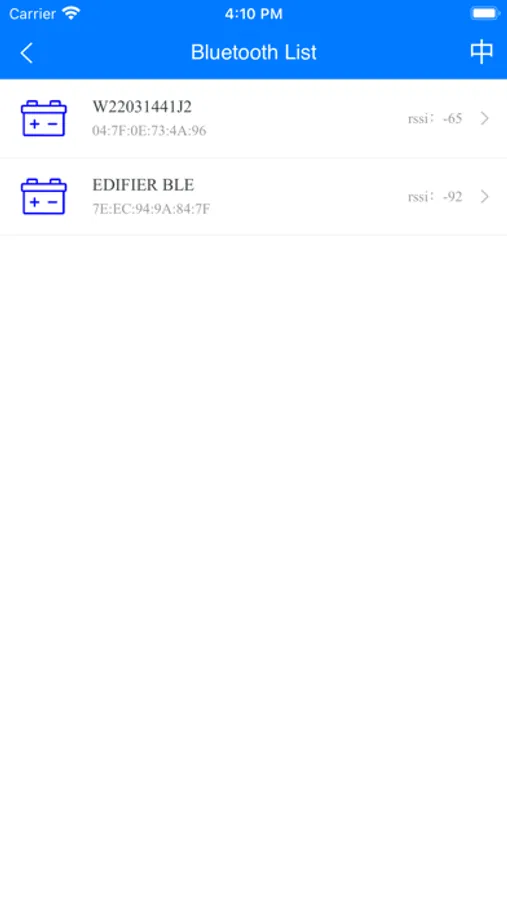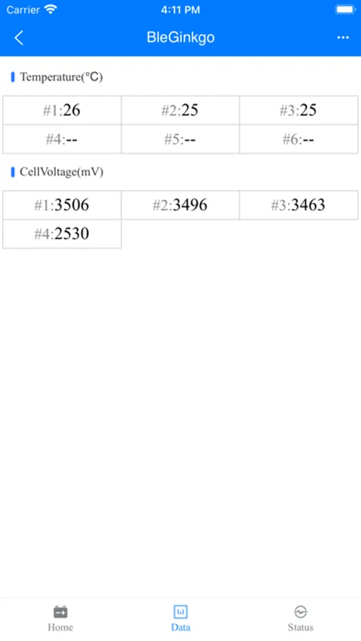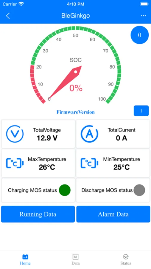 通过手机蓝牙搜索并连接外围BMS设备,采集外围BMS设备的电池数据。采集的数据有SOH,SOC,总电压,总电流,充放电循环次数,电池各个部位的温度,电池中每个电芯的单体电压,电池产品的保护状态和电池产品某些功能是否正常工作的信息。相关的硬件产品就是带电池管理系统的电池包。