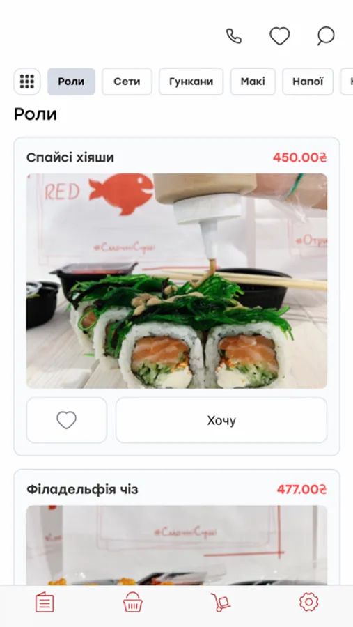З додатком Sushi RedFish замовляти суші легко, оскільки в додатку доступні детальні описи і фотографії страв
