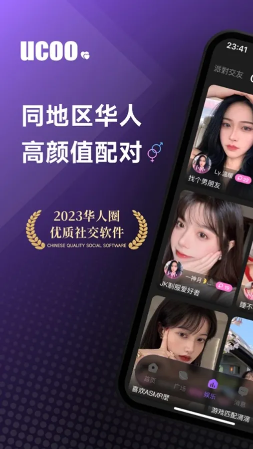 UCOO是一款面向全球华人用户的社交软件,致力于打造高质量华人交友圈,在这里那你可以找到和你同地区的华人朋友。如果你因为工作繁忙或者社交圈子有限而找不到可以一起玩的人,不妨试试下载UCOO吧!类似于tinder,soul,探探,陌陌,积目, 在UCOO也有一大批好看有趣、声音好听的朋友,快加入我们,体验线上社交的快乐吧!