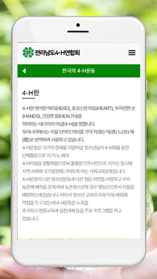 시군·도 지역4-H본부와 협력하고 상생하는 4-H운동을 통해 전통과 미래가 함께하는 전남4-H연합회를 만들어가겠습니다.