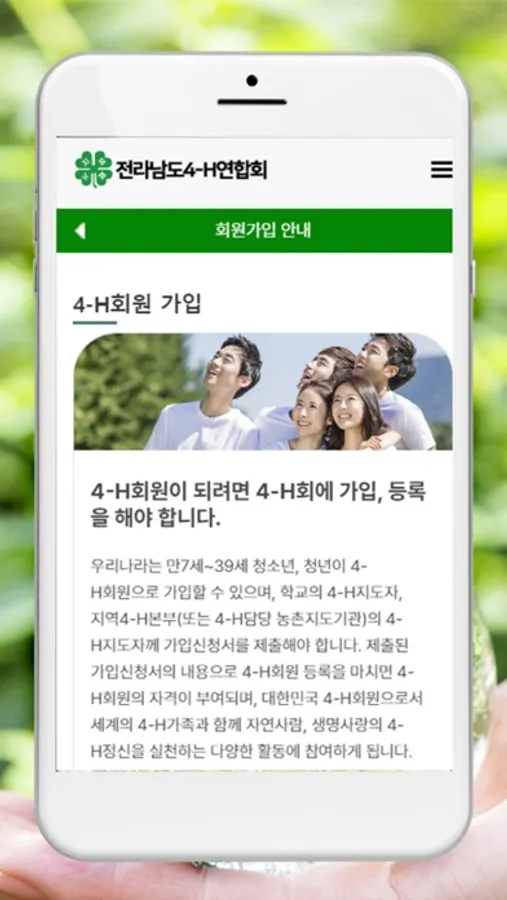 전라남도4-H연합회는 1,201명의 회원이 '좋은 것을 더욱 좋게, 실천으로 배우자'는 4-H금언 아래 21세기 영농 주역으로 활동하고 있습니다.