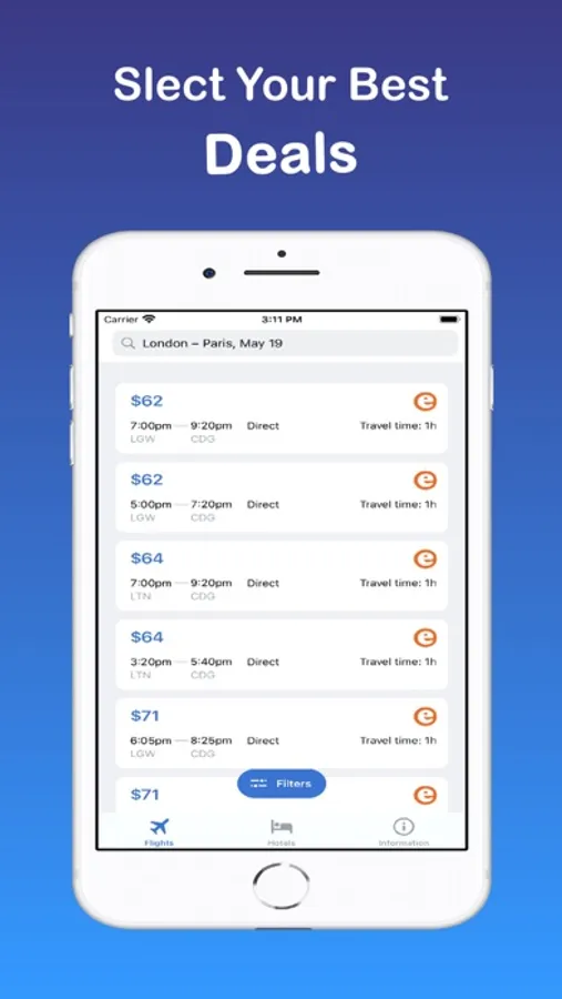 Easily search, filter and sort your options to find the right travel offers for you - whether it's flights you can change with no fees, hotels & vacation rentals with free cancellation, the cheapest deal, or the most comfortable seat.