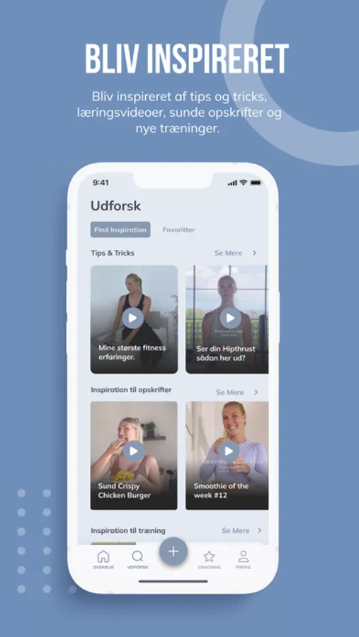 - Track dine træninger direkte i appen - jeg vil løbende dele træninger som du kan gennemføre helt gratis!