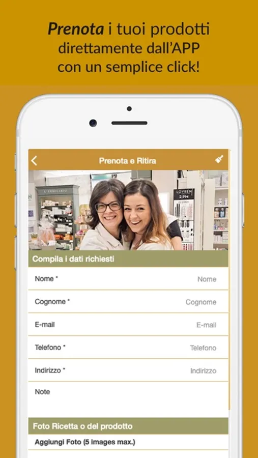 - Prenotazione ed acquisto prodotti grazie all'ecommerce integrato nella App
