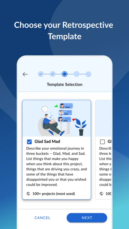 * Choose from a variety of personalized retrospective templates to meet your team's unique needs. Whether it's the Start Stop Continue or Glad Sad Mad technique, our diverse range of templates ensures a perfect fit for every retrospective.