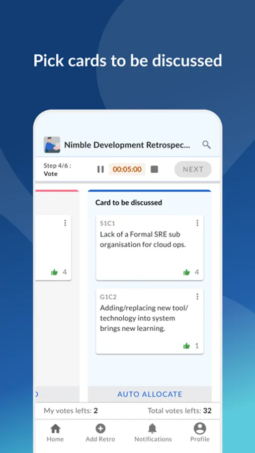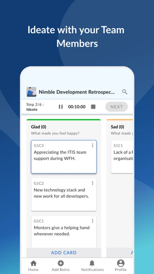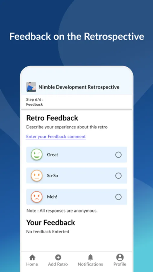 Enhance team collaboration and boost productivity with NimbleRetro mobile app, the ultimate agile retrospective tool. Streamline your retrospective meetings, acquire valuable insights, and drive continuous improvement. Try NimbleRetro mobile app now for a seamless experience!