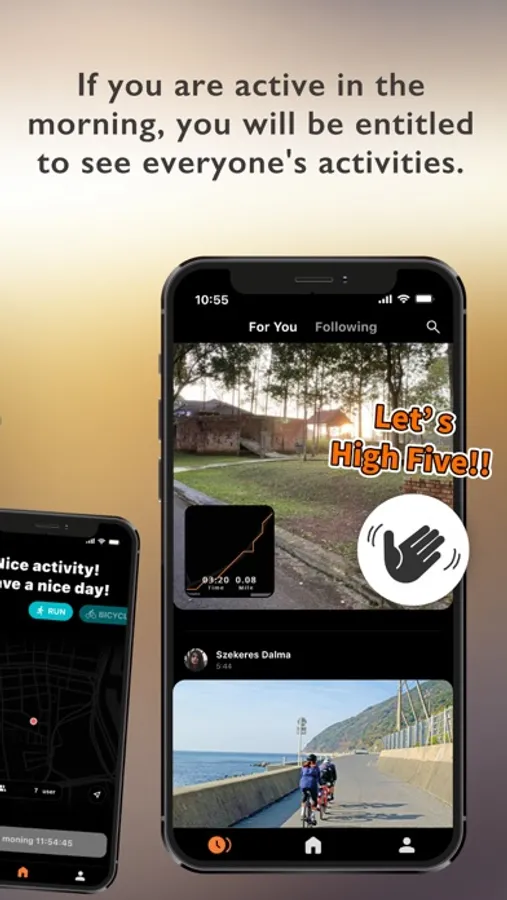 ・Let's find out fellows who exercises in the mornings - Recommendations and nearby people exercising are displayed in the top feed.