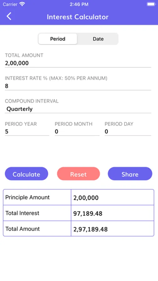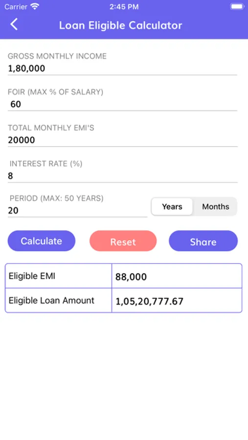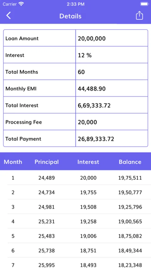 7. Allows sharing of computed EMI and loan information as a PDF.