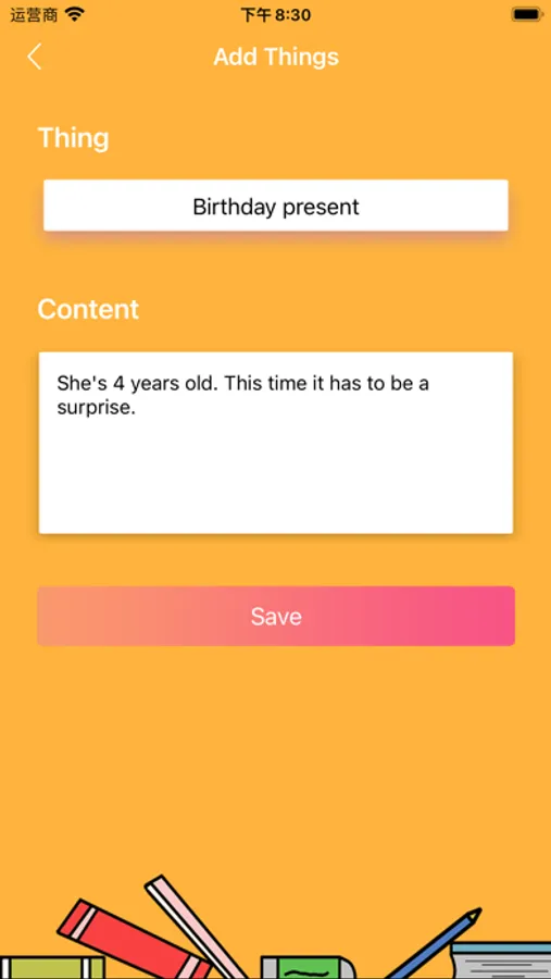 Do you need an App to keep track of your work? Do you have a lot of things to do? But you can't always remember what you did and what you didn't do. This APP is just the thing to help you. You can use it to keep track of what you want to do in the future, and also check your completion rate.