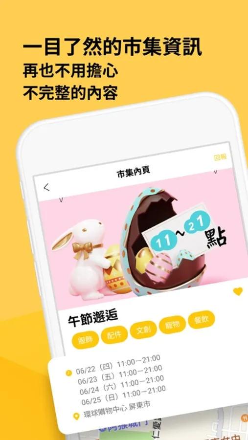 ③ 提供統整過且透明化的市集資訊,把市集類別、日期、時間等等都整理好給你看!