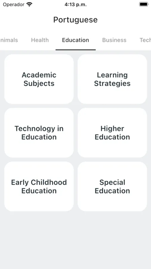 - Engaging flashcards with English-Portuguese translations