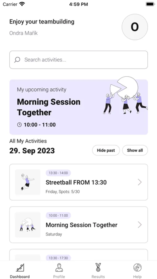 Welcome to the sport day in Hotel Sitno Vyhne. This app will allow you to track program, your activities and get notifications before an activity starts, so you won't miss a thing. You can also track the progress of your team to see how you're doing in the competitions. We look forward to seeing you there!