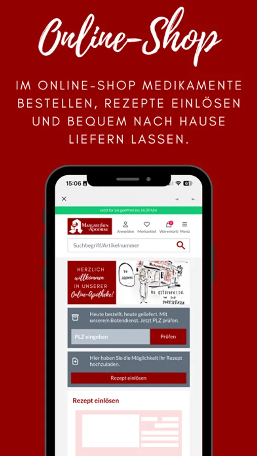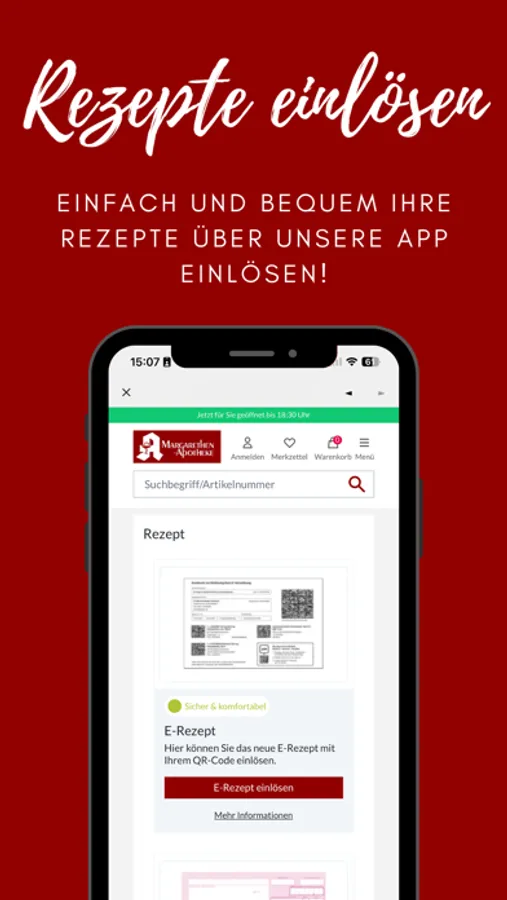 Apotheken-Gesundheits-App mit allen relevanten Serviceangeboten der Margarethen Apotheke.