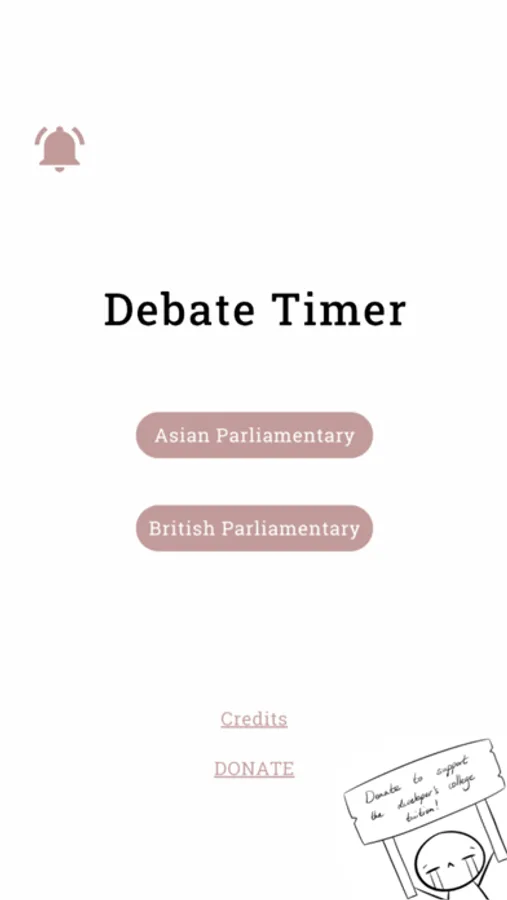 A debate timer designed for debaters and adjudicators. Available formats include Asian Parliamentary and British Parliamentary.