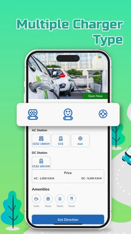 View the map to find an EV charger near you, then check real-time availability, get turn-by-turn directions, and start charging.