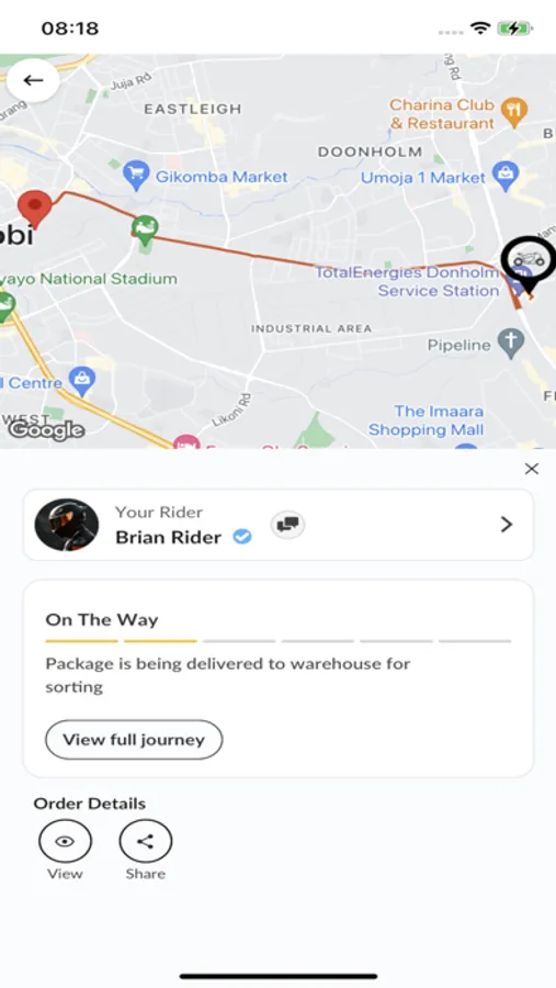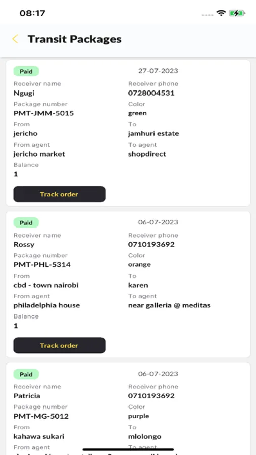Simply fill out all the necessary details on the relevant delivery form and pay for the delivery fee using the app via M-Pesa. Afterwards, you can track your package as it moves from the sending agent to the warehouse for sorting before it reaches your customer. You will receive notifications on the status of your package as it moves through the journey.