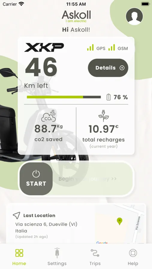 Would you like to start your scooter remotely, monitor your routes and save CO2? With myAskoll you can do all this and more!
