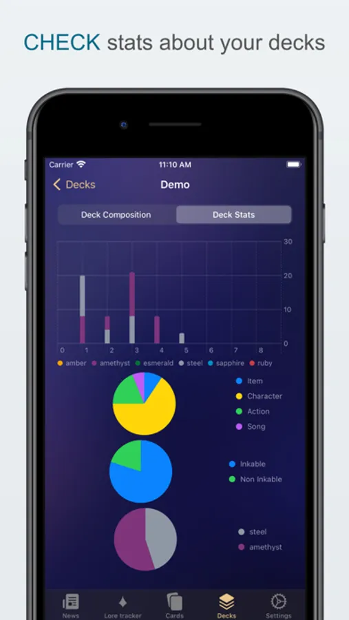 • Effortlessly create your beloved decks or import them from external sources like Lorcania! Determine if you have the necessary cards in your collection to build that dream deck, gain valuable insights through charts and share with your friends!
