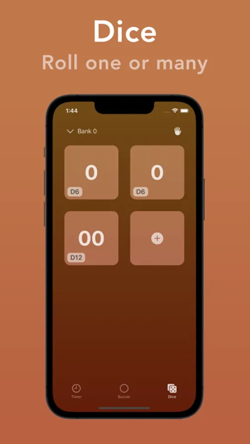 Dice - a configurable multi-die roller with multiple banks. Set up your bank of dice from D4, D6, D8, D10, D12, D20 and D100, then roll just one or the whole bank. Shake to roll!
