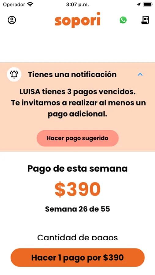 ¡Descubre la aplicación móvil Sopori! Accede al estatus de tu préstamo, realiza pagos, y gestiona tu cuenta en tu dispositivo. Además, obtén soporte vía WhatsApp. ¡Una experiencia completa en tu mano!