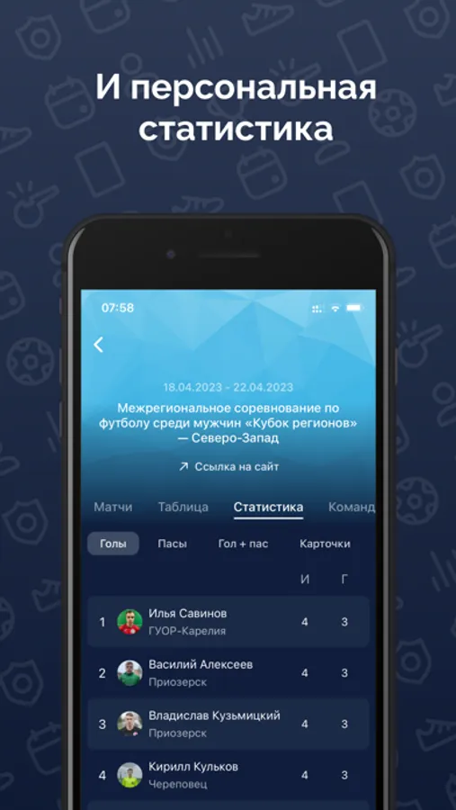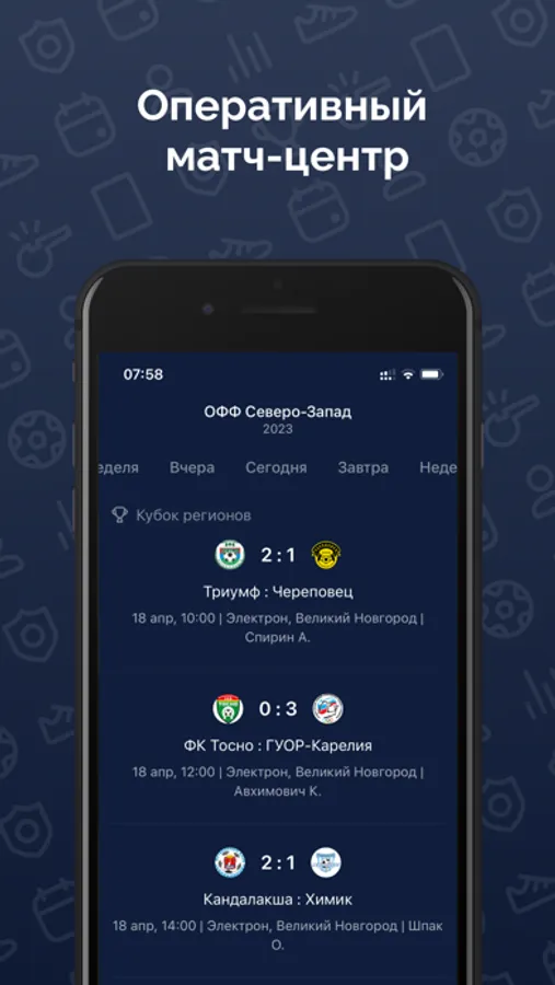 Всё о турнирах Региональной общественной организации «Объединение федераций футбола «Северо-Запад»: календарь матчей и результаты, подробные протоколы матчей, всегда актуальная турнирная таблица и персональная статистика.