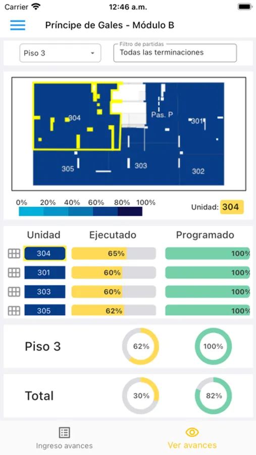 Visualiza los datos de avance y revisa el estado de tu proyecto sea donde sea que estés.