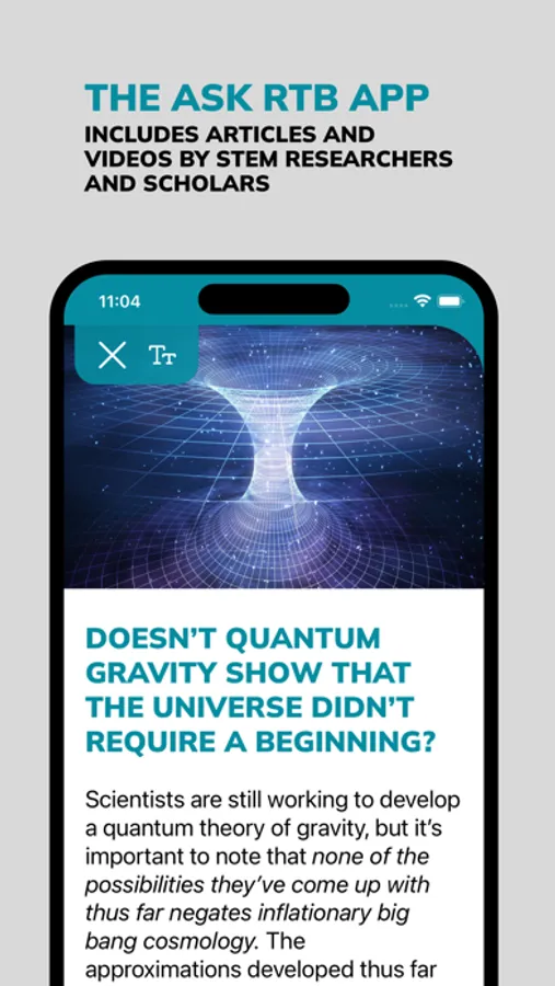 The Ask RTB app, brought to you by Reasons to Believe (RTB), is a free tool to equip you with bite-sized answers to some of the most pressing questions about the intersection of science and the Christian faith. Explore the truth of Scripture as you learn how scientific discoveries reveal the God of the Bible. For more resources from Reasons to Believe, visit reasons.org or contact us at askrtb@reasons.org.