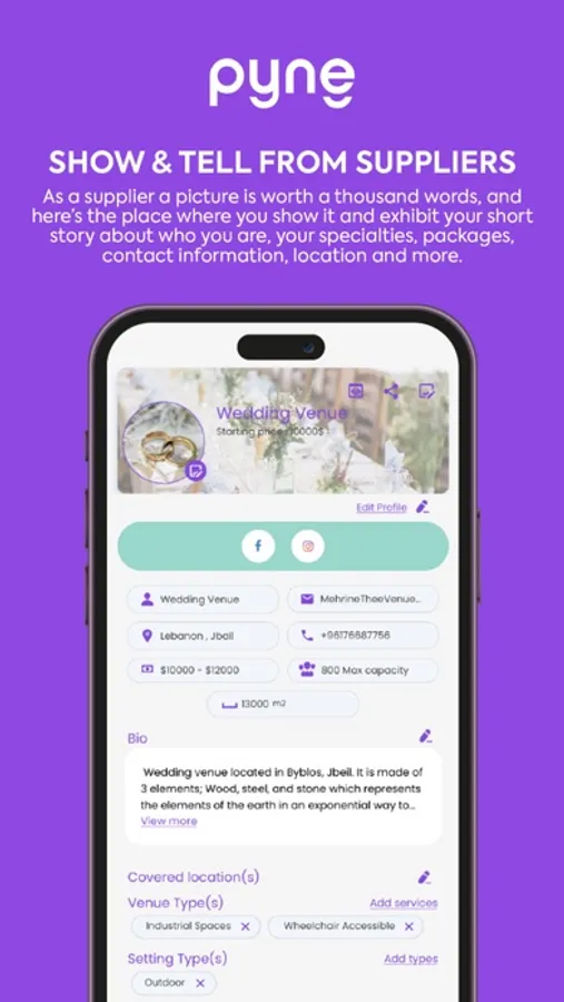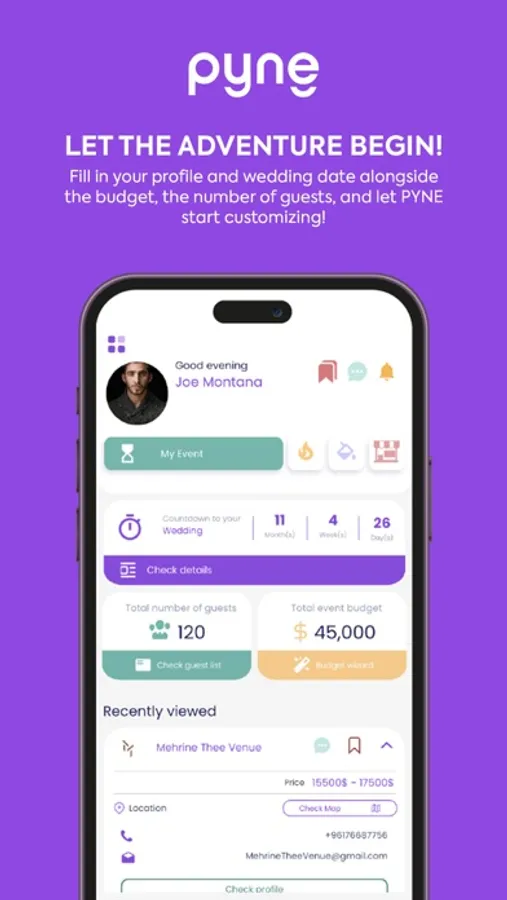PYNE will guide you through every step, ensuring a worry-free, stress-free, and memorable experience. It customizes your search according to your budget. From finding the wedding planners, to car rentals, photographers, venues, catering, and entertainment in Lebanon - PYNE, has an immense database of clients that fit all your preferences.