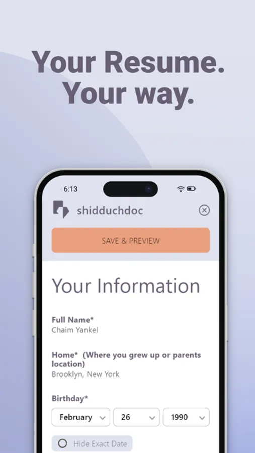 Effortlessly share your shidduch resume with a simple and elegant link. Ensure others always have access to your latest information.