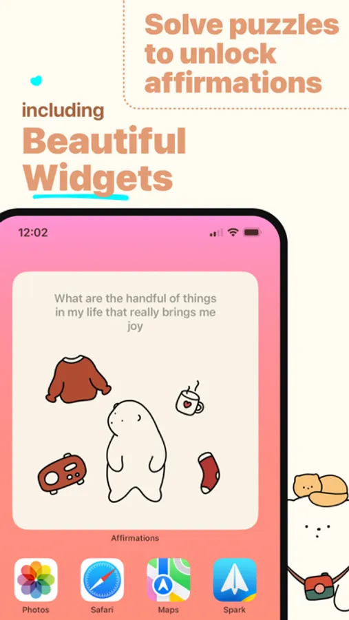 Bears Affirmations is a collection of 70+ beautifully hand-drawn puzzles, each with a powerful message about how to build a happy life. The puzzles cover the topics of: