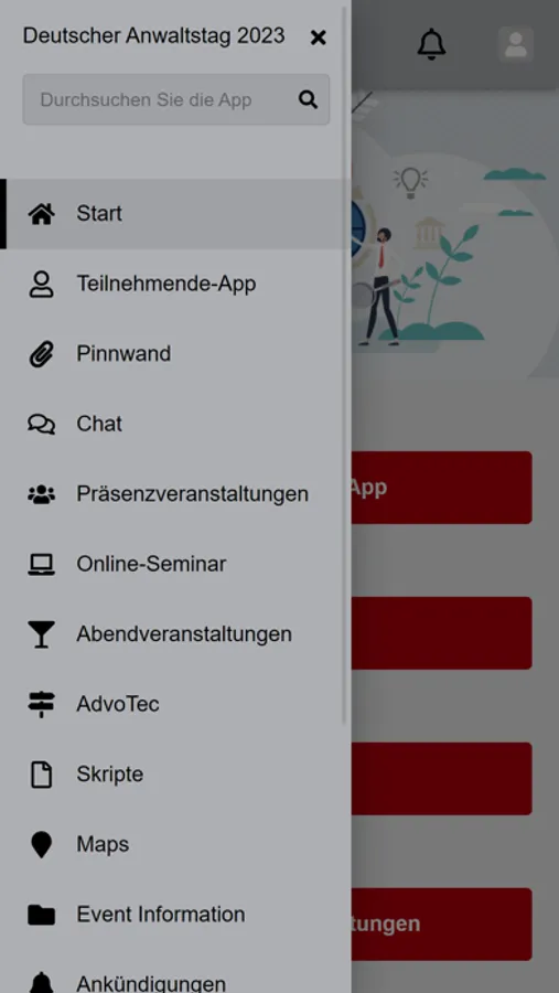 Deutscher Anwaltstag 2023: Der Anwaltstag kommt virtuell und in Präsenz mit über 70 Fachveranstaltungen, 4 Abendveranstaltungen und der Fachausstellung AdvoTec. Die Online-Seminare finden vom 12. bis 14. Juni im virtuellen Raum und die Präsenzveranstaltungen vom 14. bis 16. Juni im RMCC RheinMain CongressCenter Wiesbaden statt. In der App finden Sie das Fachprogramm, Informationen zu den Abendveranstaltungen, zur begleitenden Fachausstellung AdvoTec sowie Lagepläne des RMCC. Hier sehen Sie auch, wer noch alles am Anwaltstag teilnimmt. Treten Sie mit anderen Teilnehmer:innen in Kontakt.