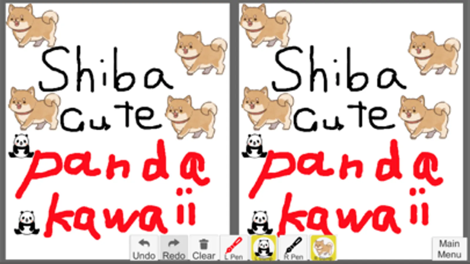 Different pens and stamps are set and saved on the left and right sides.