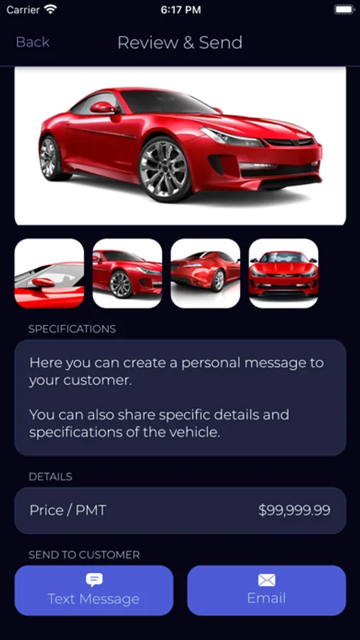 - The ability to create customized digital vehicle presentations with a mobile application that can easily be shared with customers via email or text message links.