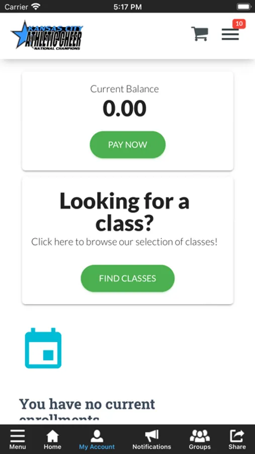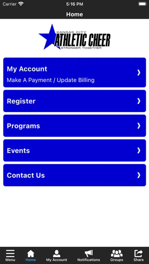 The Kansas City Athletic Cheer app allows you to manage your account with ease, register for classes, parties, special events and team communications. You'll also receive important notifications about class changes, closings, registration openings, special announcements, and upcoming events.