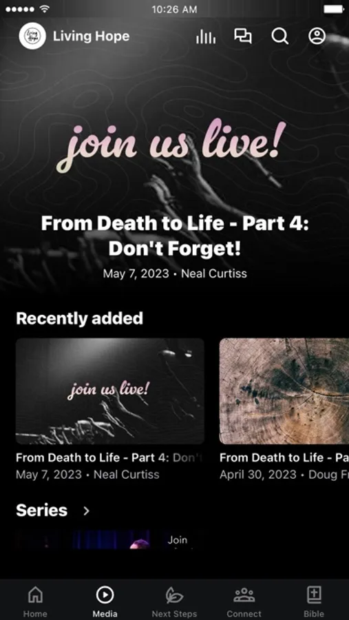• Livestream & past sermons built right in. Opt-in to notifications to know when we go live!