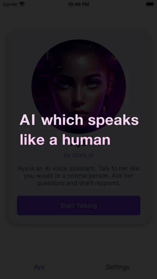 It's a next generation AI assistant powered by ChatGPT API. Aya can answer all sorts of questions. Instead of texting, use your voice to communicate with AI.