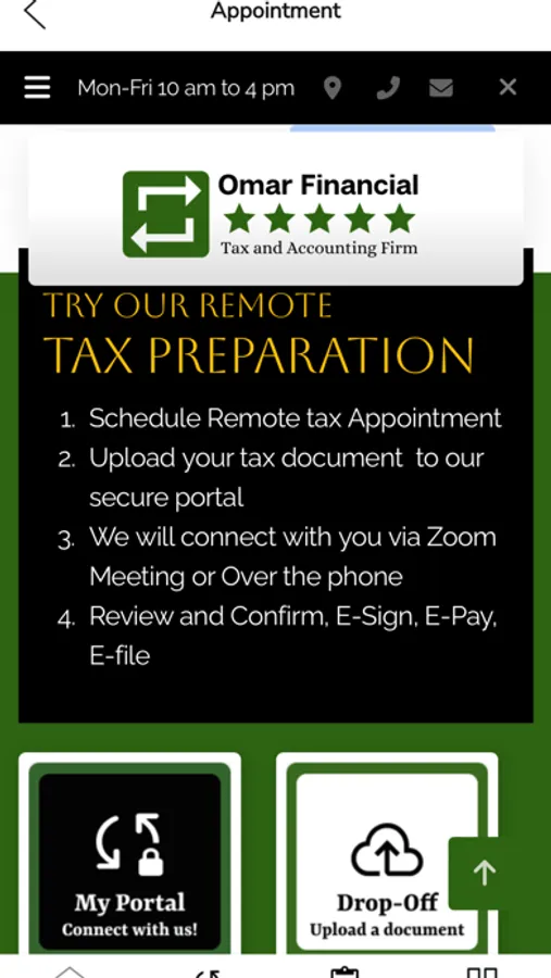 Our remote tax filing service allows you to Send, receive your tax documents, connect with a Tax preparer, and receive your completed return and many more! without ever having to leave your home.