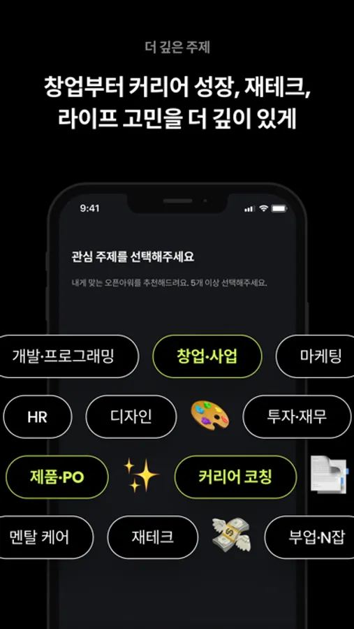 창업, 사업, 경영, 세일즈, 프로덕트, HR 등 실무 전문 분야 부터 IP 창작, 재테크, 멘탈 케어 등 라이프 스타일까지