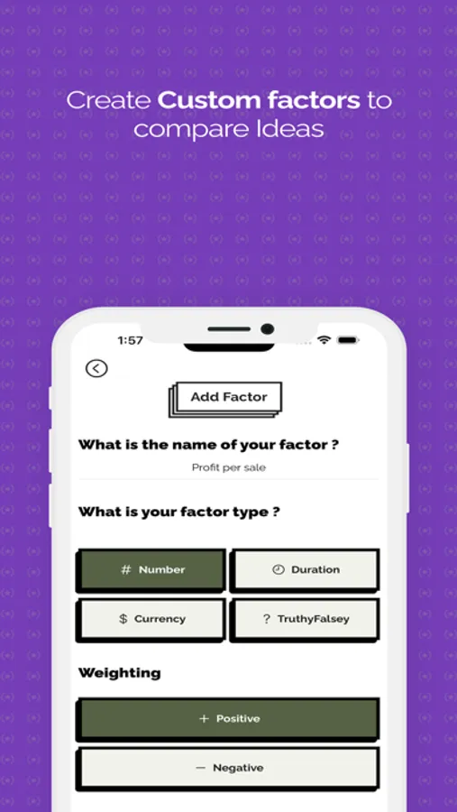 Ideate makes it easy to pick business ideas to work on. Rank business ideas based off your own custom factors .
