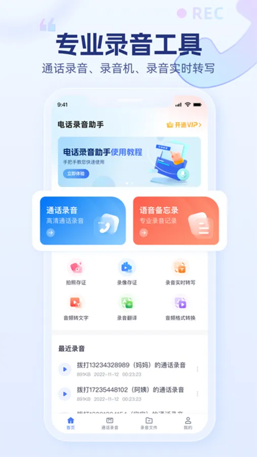 电话录音助手是一款专业的通话录音软件,只需点几下就能为您的手机通话进行录音,轻轻松松记录每次谈话的细节,随时随地获取通话录音内容。