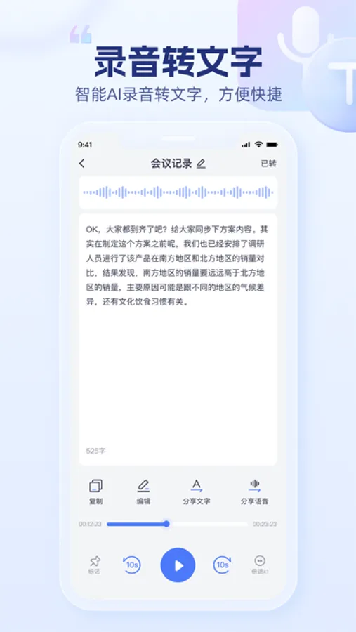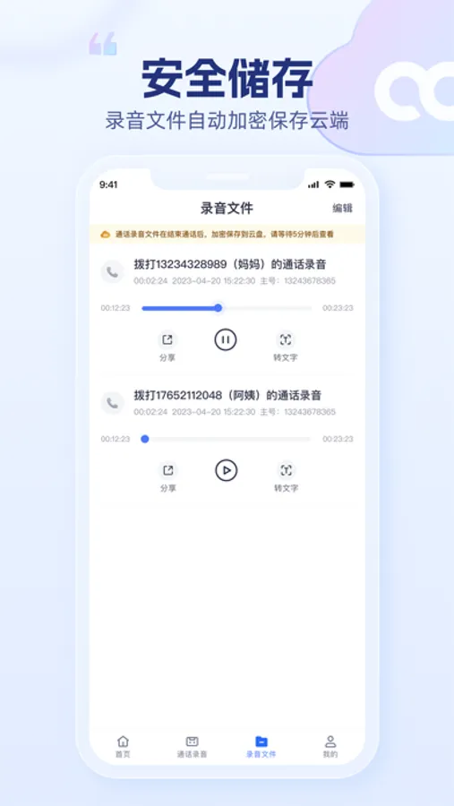 - 安全云储存:超大网盘容量,加密云储存语音文件,任意设备导出不丢失;