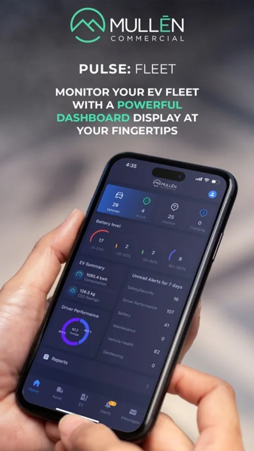 Mullen Automotive is committed to helping fleets improve cost savings, safety, training, productivity and emissions impact. Commercial Pulse provides managers and drivers a connected fleet of vehicles with maintenance alerts, real-time vehicle location, driver safety, battery state of charge, metrics and more.