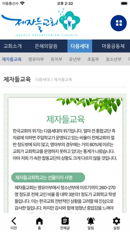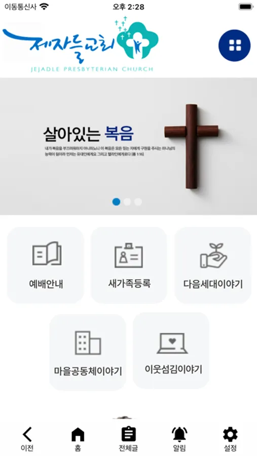 * 100% 연동형 앱 : 홈페이지에 등록된 내용, 게시물, 설교영상, 사진 등의 콘텐츠를 앱과 100% 연동하여 실시간으로 앱을 통해 확인할 수 있습니다.