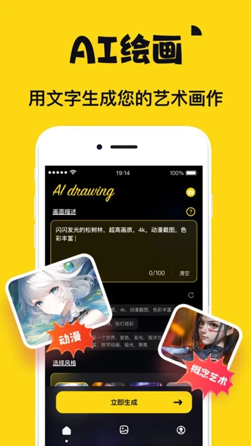 梦境生成器软件,是一款实用的梦境图片生成软件。您只需要输入您天马行空的画面提示语,选择您想要生成的图片风格以及图片尺寸,一张精美的梦境图片将会展现在您的面前。