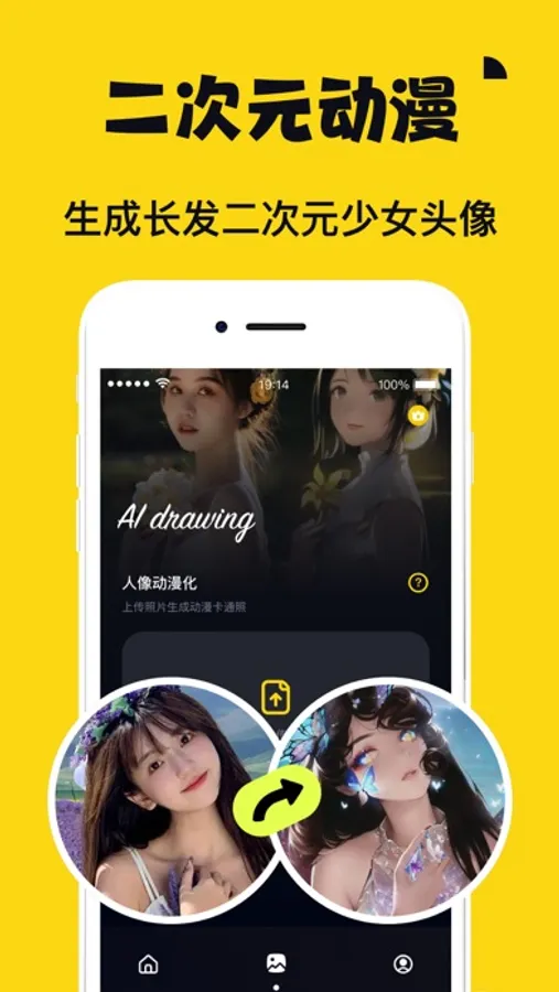 除此之外,我们还支持人像动漫化,您可以导入一张自拍图片,然后通过AI技术,会帮您生成一张动漫风格的人物图片。